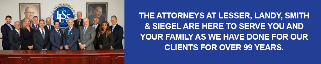 Lesser, Landy, Smith & Siegel is a third-generation personal injury law firm with 99 years of dedication to helping people who have experienced trauma due to the carelessness or negligence of others. Our team of skilled trial attorneys in West Palm Beach, Boca Raton, Wellington, Stuart, and Bradenton practice law with professionalism, integrity, ethics, and a commitment to personal client service. Our firm represents the needs of clients throughout Florida in personal injury, nursing home neglect, negligent security matters, and wrongful death cases, guiding them through every step of the legal process and delivering the best results for their case.